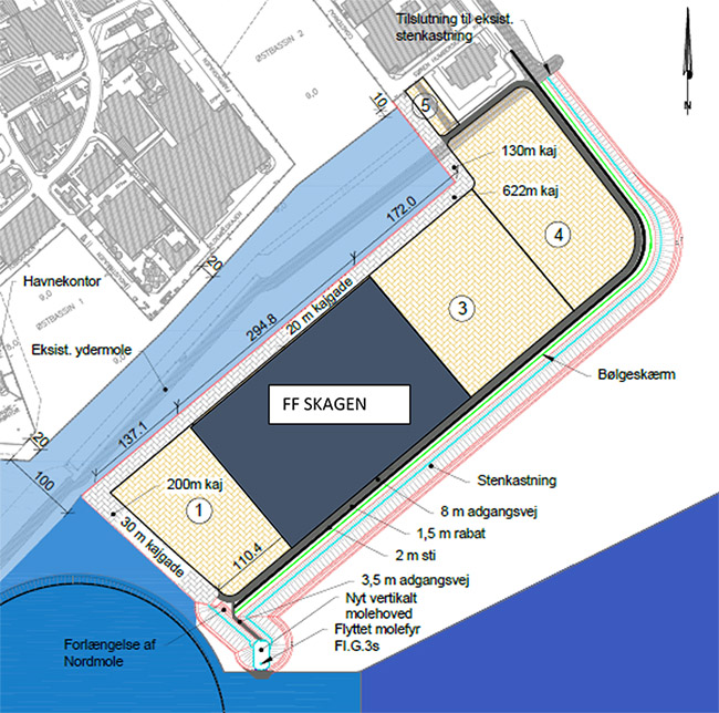 Etape 3 af havneudvidelsen indeholder en landudvidelse på cirka 190.000 m2 og 930 meter ny kaj. Med en kontrakt på 60.000 m2 er FF Skagen A/S arealmæssigt den største nøgleaktør på etape 3.