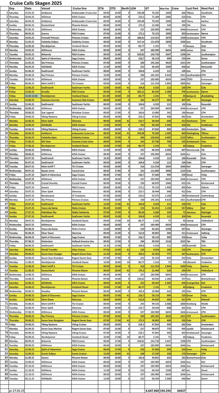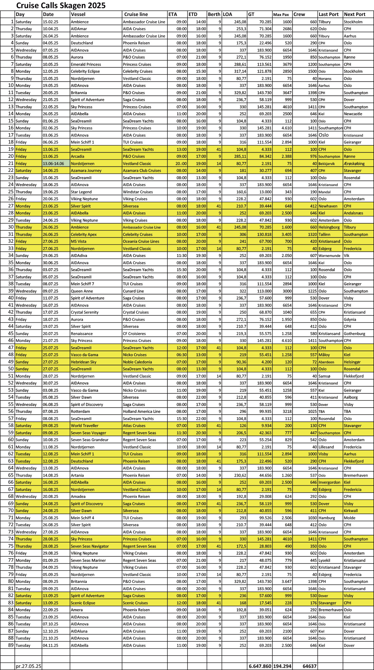 Skagen Havn forventer at modtage 89 krydstogtanløb i 2025.